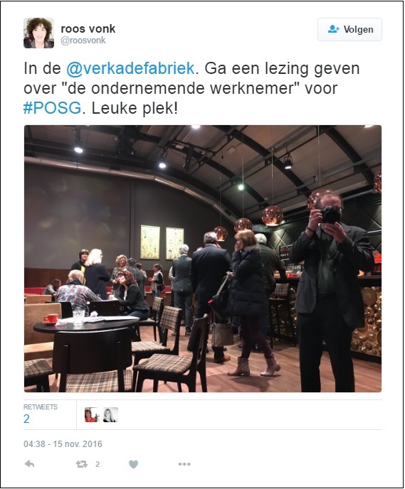 In de Verkadefabriek te ‘s-Hertogenbosch vond dinsdag 15 november onze expertisebijeenkomst ‘Ondernemende werknemers creëren’ plaats. Tijdens deze middag nam Roos Vonk ons mee in het gedrag van werknemers: waarom doen zij wat ze doen? Met treffende anekdotes en voorbeelden wist zij een herkenbaar beeld neer te zetten van hoe mensen zich op de werkvloer gedragen.