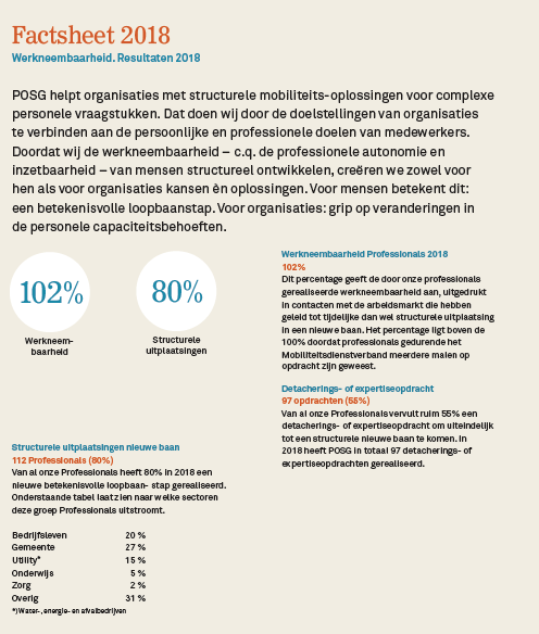 Ook in 2018 hebben wij middels ons Mobiliteitsdienstverband een aanzienlijk aantal professionals verder mogen brengen in hun loopbaan. De structurele uitplaatsingen vonden plaats in diverse sectoren en er ging geregeld een detacherings- of expertiseopdracht aan vooraf. Bekijk hieronder de volledige resultaten (klik op de afbeelding om te vergroten).