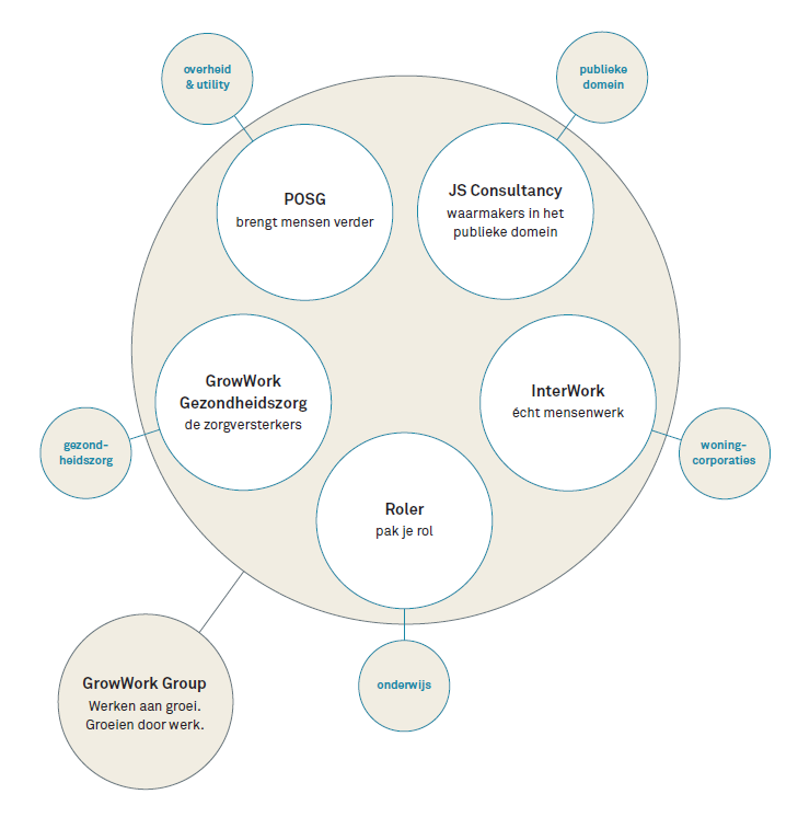 POSG maakt deel uit van GrowWork Group (GWG), één van de grootste HR-dienstverleners in het publieke domein. Onze zusterbedrijven binnen GWG – GrowWork Healthcare, InterWork, JS Consultancy en Roler – zijn werkzaam in respectievelijk de sectoren zorg, woningcorporaties, overheid en onderwijs.